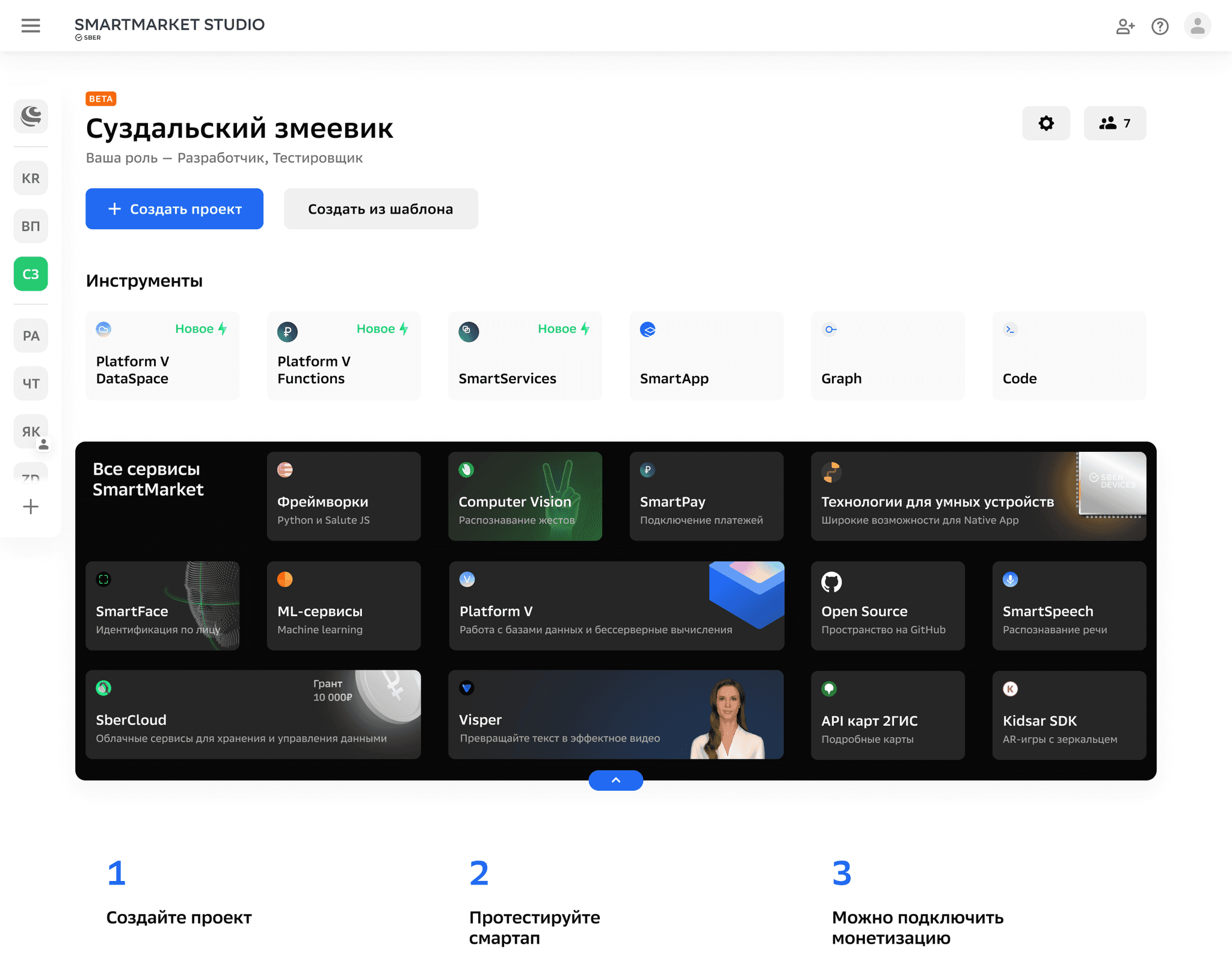 Сервис для разработчиков Сбера. В Studio можно создавать приложения, подключать API, оплачивать лицензии, раздавать роли в команде и прочие радости жизни для разработчиков